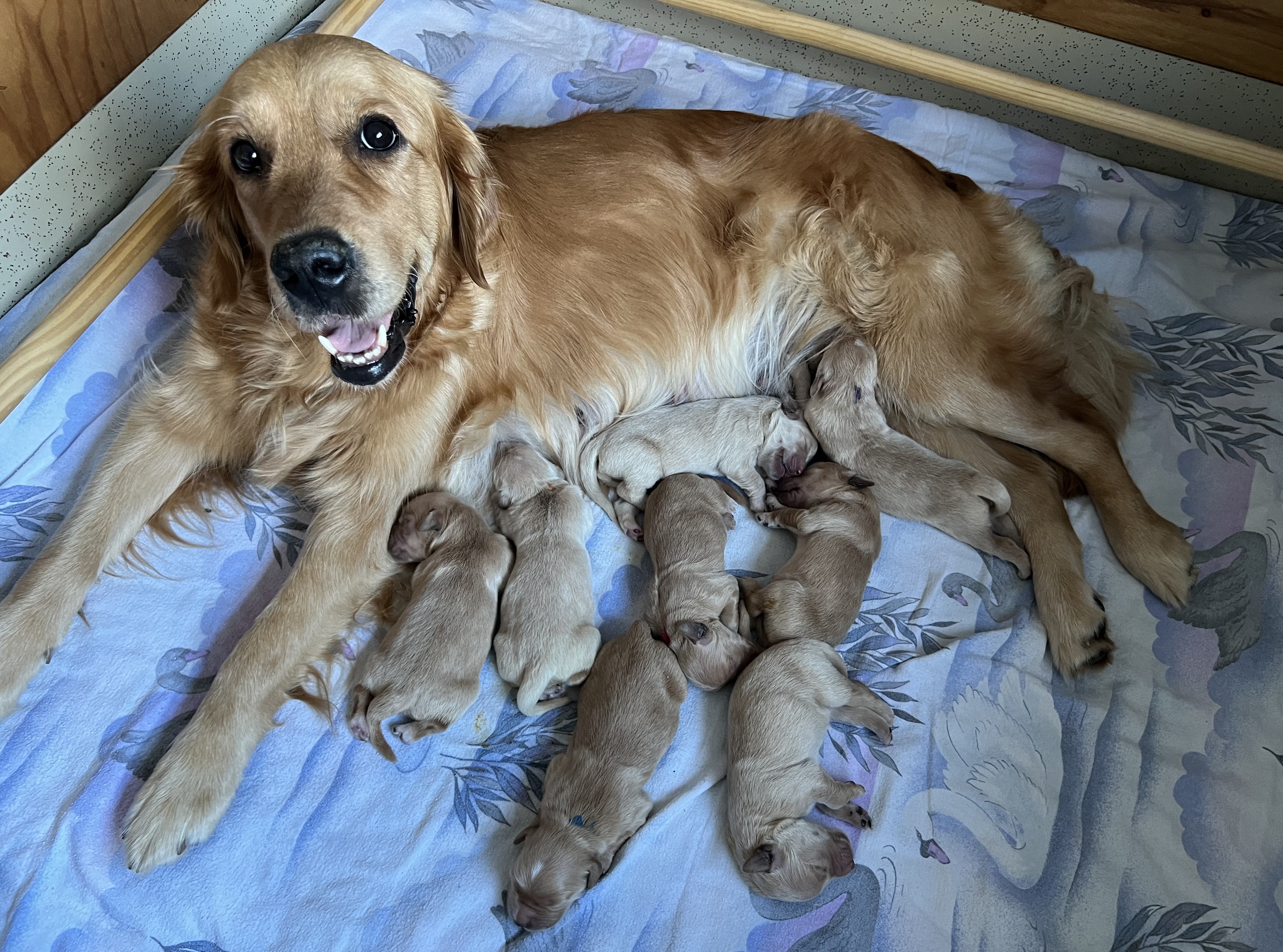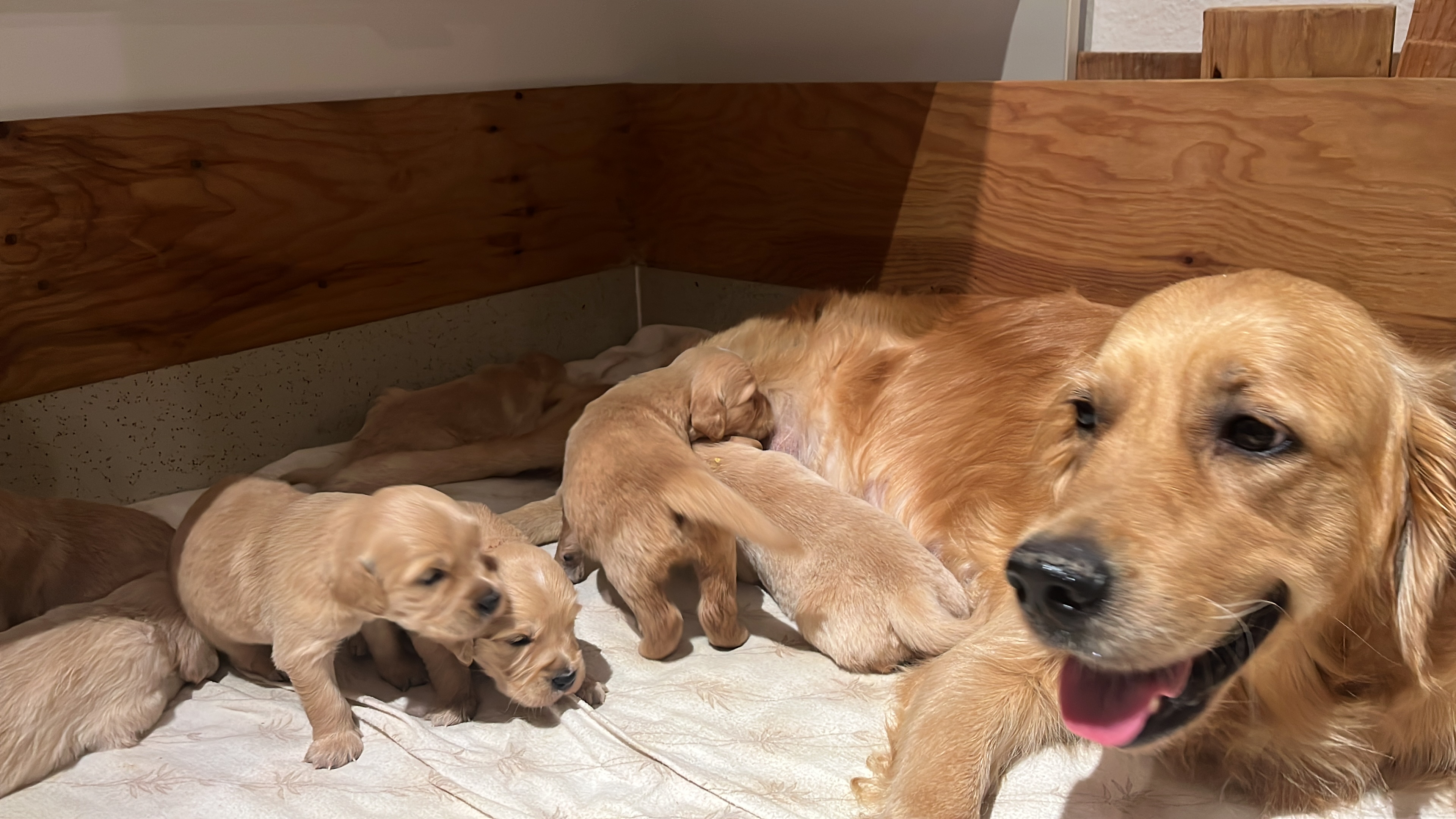 Am 24.11.2025 hat Alley ohne Komplikationen 8 Welpen (6/2) mit tollen Wurfgewichten geworfen.